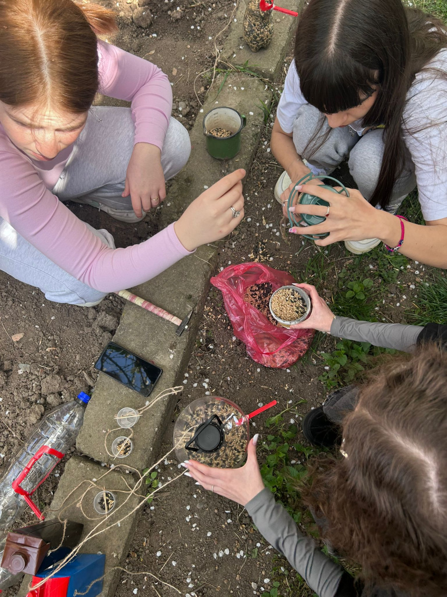 • Zona „Păsări Fericite”: PET-urile și cartoanele de lapte au devenit hrănitoare creative pentru păsările din curtea școlii.